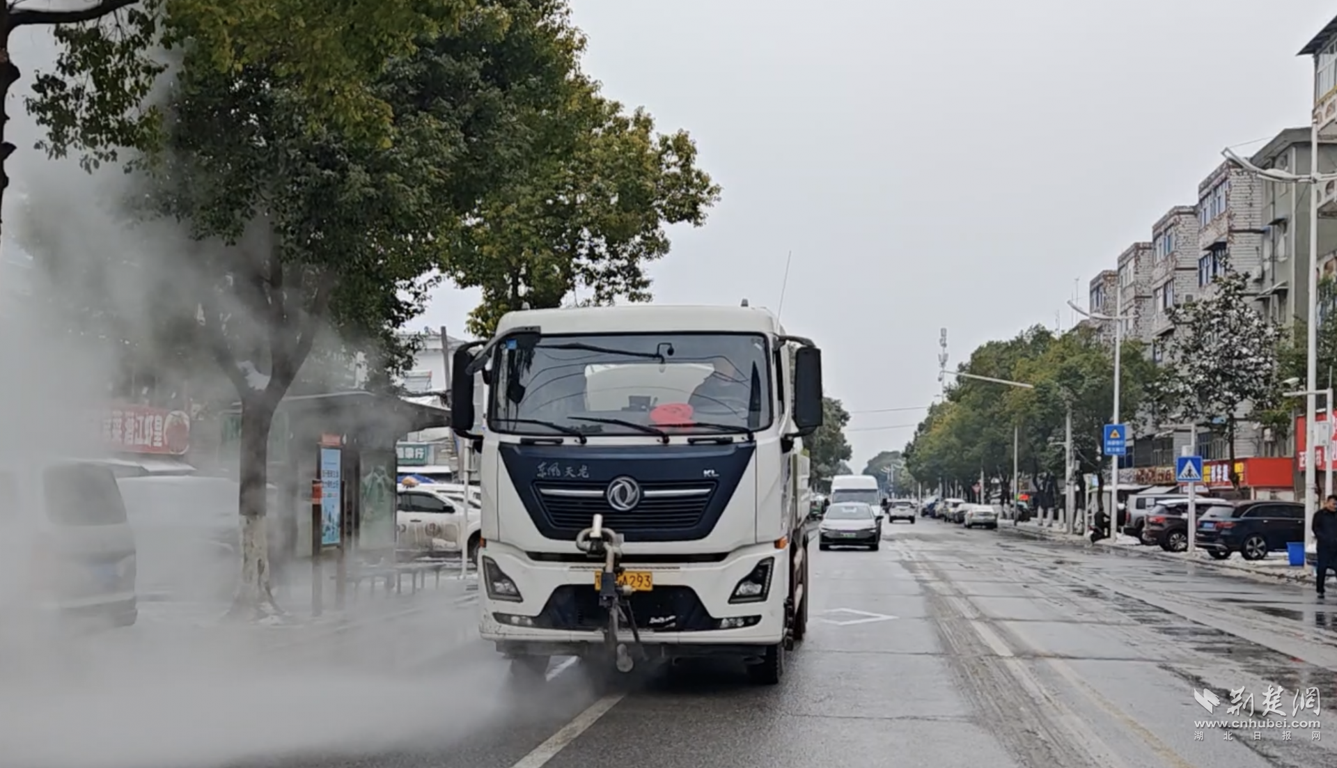只見灑水車裝載著熱氣騰騰的熱水,對積雪進行沖刷。“這熱水可是轄區(qū)垃圾發(fā)電廠的余熱,是市政用水經(jīng)過反復加熱形成的蒸汽,我們又將其進一步利用了?!毙聹檄h(huán)衛(wèi)公司相關負責人介紹說,這屬于物理融雪的新模式。熱水一沖,緊實的雪很快化開,后面的吸掃車立馬跟上,把雪水吸得干干凈凈,路面一點積水不留,也就不會二次結冰。