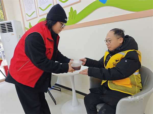 為戶外工作者送上臘八粥。 通訊員供圖