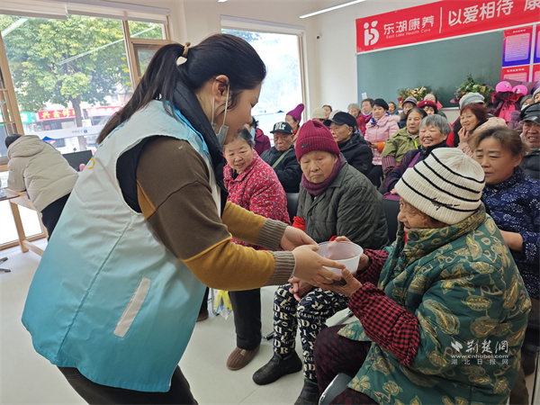 為老人呈上熱騰騰得臘八粥。 通訊員供圖