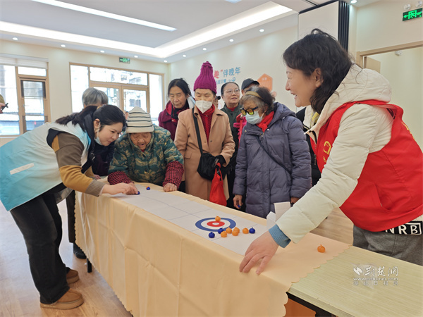 老人參加桌上冰球游戲。 通訊員供圖