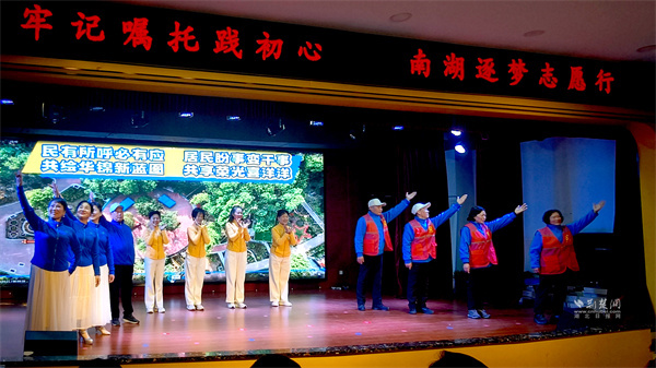 活動(dòng)中,取材于寧松社區(qū)真實(shí)故事的情景劇《南湖暖陽(yáng)》,藝術(shù)再現(xiàn)了鄰里互助的溫情日常;華錦社區(qū)自編自導(dǎo)自演的情景劇《華錦“民”星,微光閃亮》,將社區(qū)“民星”們植綠煥新、熱心服務(wù)的點(diǎn)滴故事搬上舞臺(tái),生動(dòng)詮釋了“微光”的力量;水域天際社區(qū)的詩(shī)朗誦《以志愿之名書青春華章》,配合著志愿者從舞臺(tái)各處匯聚而來(lái)的精心設(shè)計(jì),寓意著志愿服務(wù)精神在南湖遍地開花……這些源自生活、貼近民心的節(jié)目,不僅豐富了風(fēng)采展的形式,更讓感動(dòng)人心的力量在藝術(shù)的共鳴中得以升華和傳遞。
