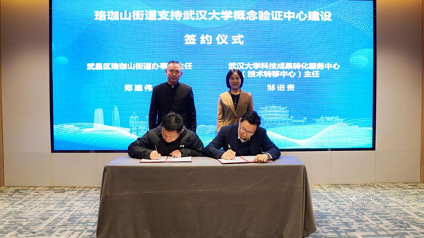 武昌區(qū)珞珈山街道與武漢大學科技成果轉(zhuǎn)化服務(wù)中心現(xiàn)場簽約。 通訊員供圖