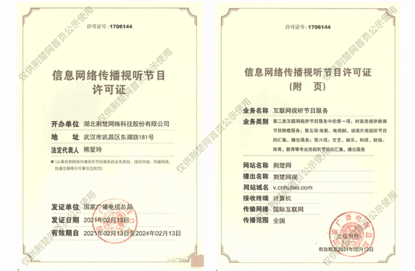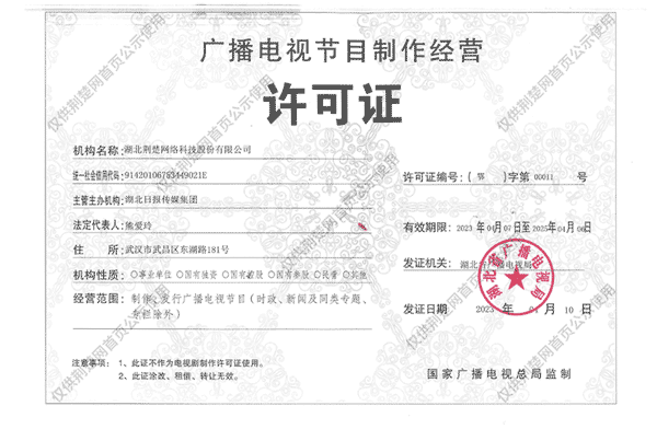 廣播電視節(jié)目制作經營許可證(鄂)字第00011號