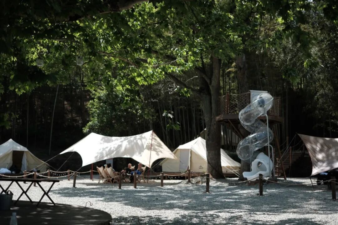 自帶空調(diào)的豪華帳篷,甩手就能入?。贿€可以體驗(yàn)多種戶外休閑項(xiàng)目,如射箭、滑滑梯、秋千、垂釣溯溪等,還有不定期音樂會(huì)、露天電影等各類主題活動(dòng)。
