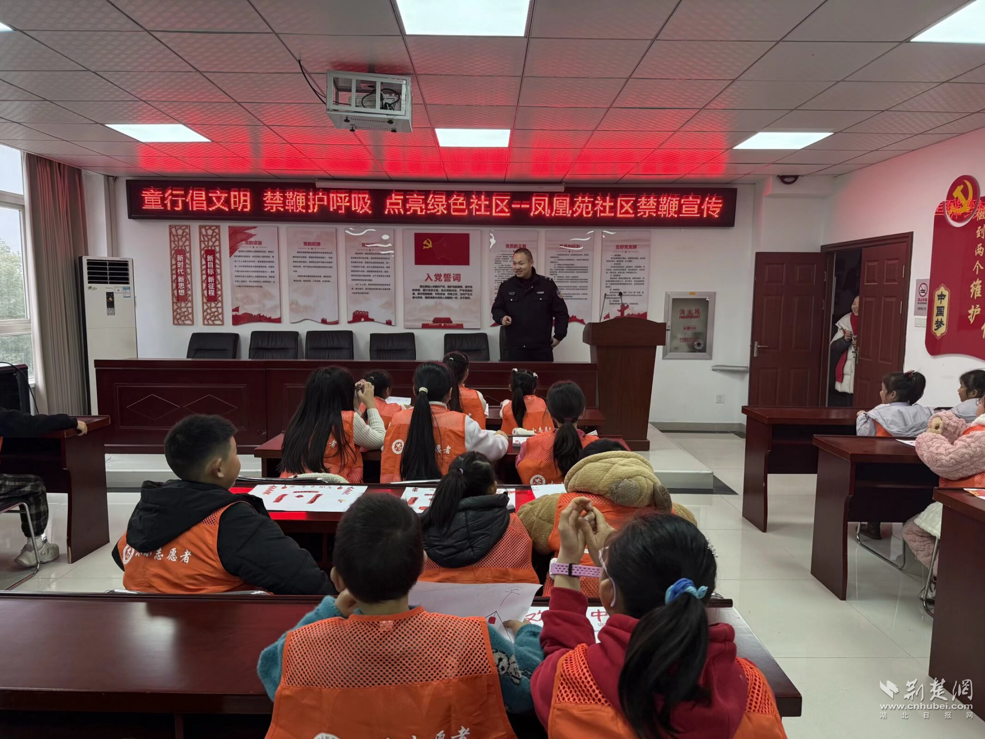 為提升宣傳專業(yè)性,社區(qū)還邀請(qǐng)了軍山派出所的民警,為孩子們開展了一場簡潔實(shí)用的禁鞭知識(shí)培訓(xùn)。民警用通俗易懂的語言,結(jié)合身邊的真實(shí)案例,向孩子們講解了禁鞭的核心意義。