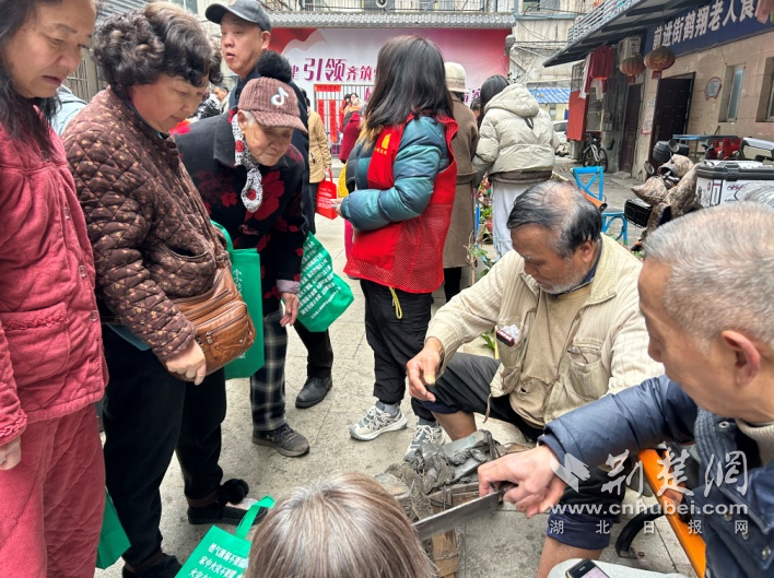 便民服務(wù)區(qū)人氣最旺。武商集團(tuán)世貿(mào)廣場(chǎng)帶來(lái)的專(zhuān)業(yè)皮具清理服務(wù),讓不少“老物件”煥然一新;理發(fā)、磨刀、洗鞋、洗鍋等攤位前,志愿者們動(dòng)作嫻熟、服務(wù)周到,幫居民解決生活中的“關(guān)鍵小事”。