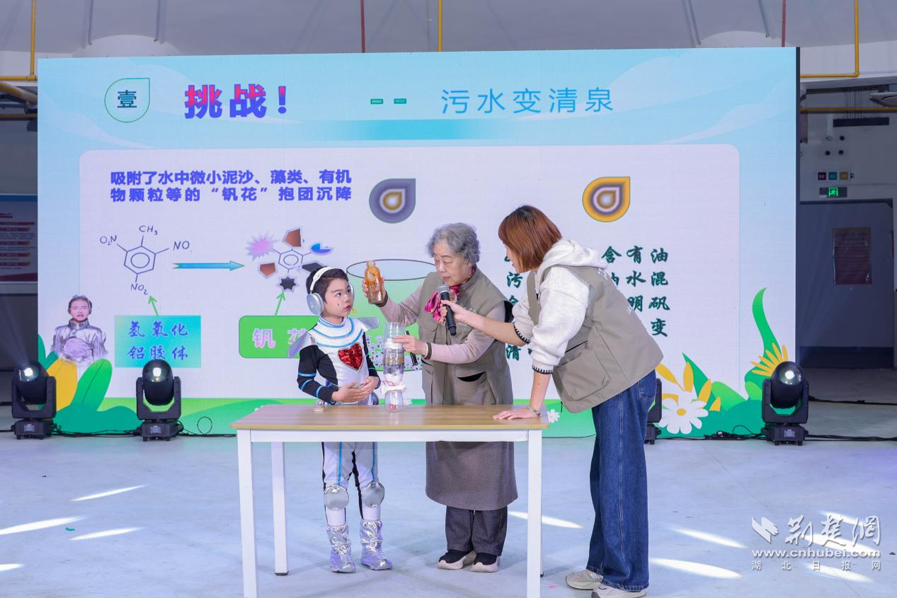 演出結束后,科普專家熊永紅教授和劉漢生老師開展趣味小論壇,進一步延伸劇中知識點。熊教授現(xiàn)場復刻“污水變清水”實驗,讓孩子們直觀感受凈水原理;劉老師則結合江漢湖泊生態(tài)解答“江漢魚是否只屬于江漢區(qū)”的問題,并分享專屬繪本,引導孩子在互動中理解科學。