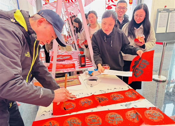 在“傳統(tǒng)年味體驗(yàn)區(qū)”,書法老師揮毫潑墨,為職工書寫定制春聯(lián)與“?!弊?,不少職工也提筆嘗試,感受筆墨書香中的文化傳承。非遺剪紙攤位前,剪紙藝人細(xì)心指導(dǎo),一張張紅紙?jiān)谑种凶兂删赖拇盎ǎ毠ぴ趧?dòng)手實(shí)踐中領(lǐng)略傳統(tǒng)手工藝的魅力。