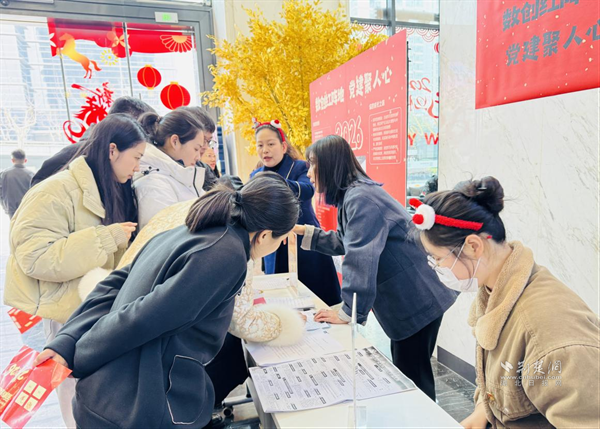 此外,現(xiàn)場還設(shè)有“黨建宣傳與入黨咨詢站”,通過展板系統(tǒng)展示樓宇黨建工作成效、支部風(fēng)采與陣地建設(shè)情況,工作人員為職工提供入黨政策講解和成長指導(dǎo),吸引多位職工駐足咨詢并登記入黨意向,推動(dòng)組織關(guān)懷切實(shí)延伸到樓宇一線。