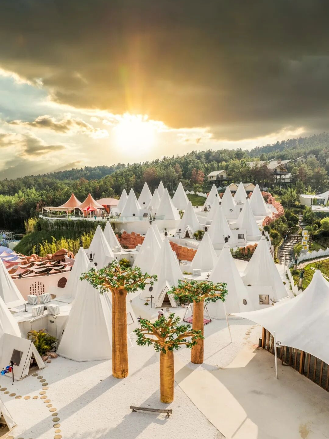 住宿選擇:舒適便捷,適配團(tuán)隊(duì)需求,夢棲谷度假區(qū)三大主題酒店+和韻樓,房型涵蓋標(biāo)間、套房,可滿足上百人團(tuán)隊(duì)入住。酒店裝修融入草原元素,部分房間推窗可見野,新春期間還會有專屬布置,讓團(tuán)隊(duì)住得舒心又有儀式感。