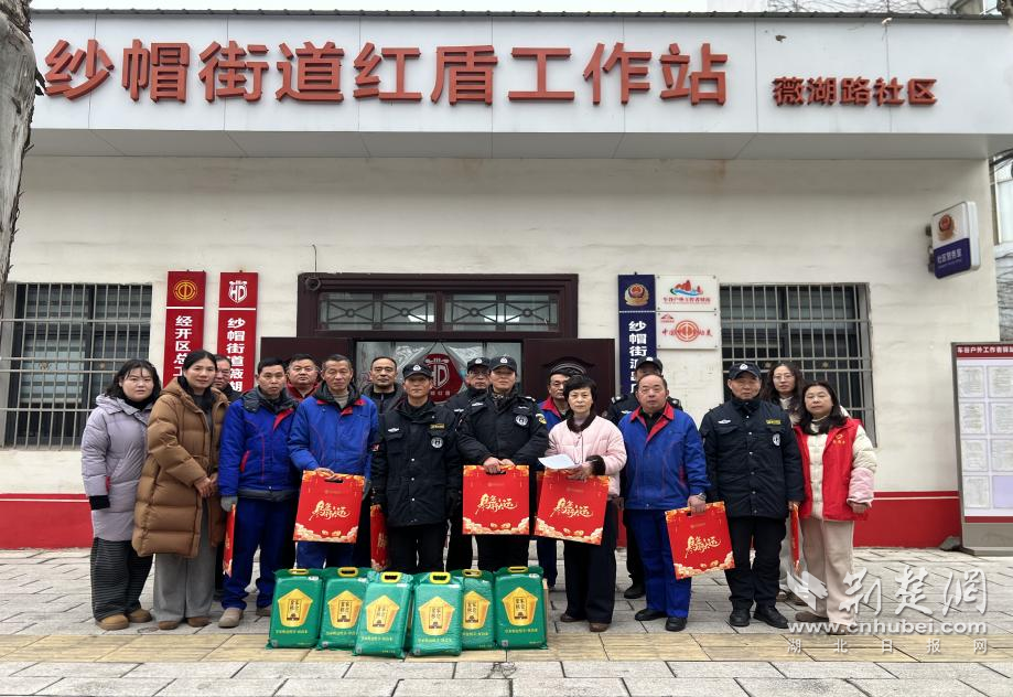 荊楚網(wǎng)(湖北日報網(wǎng))訊(通訊員吳悠琪)2月10日,武漢經(jīng)開區(qū)紗帽街道薇湖路社區(qū)工會驛站開展春節(jié)慰問、新春送暖活動,為轄區(qū)內(nèi)保安、保潔等新業(yè)態(tài)從業(yè)人員送上大米、春聯(lián)等慰問品,向節(jié)日期間堅守崗位的一線工作人員送上新春問候。