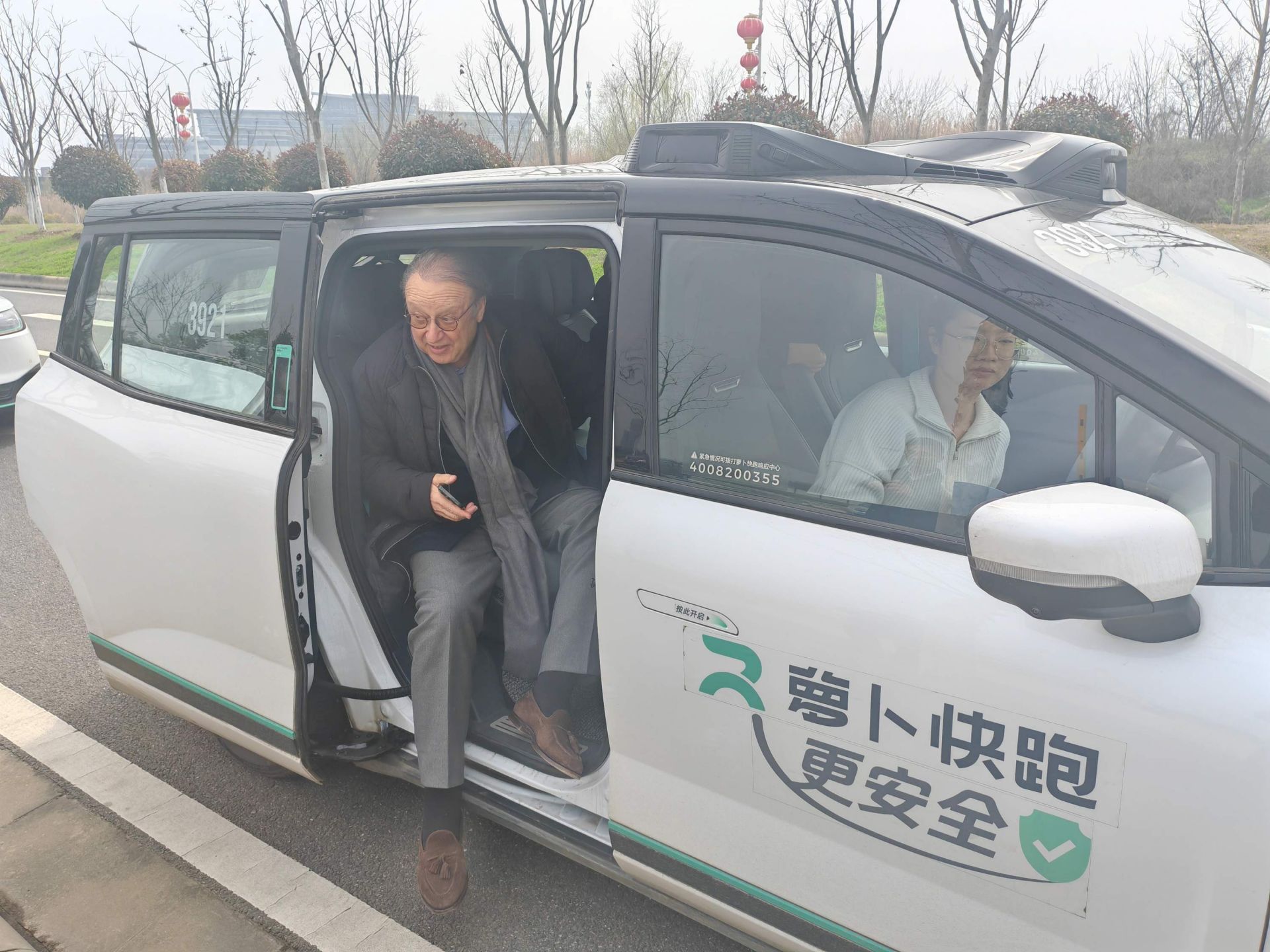 斯泰蘭蒂斯集團(tuán)副董事長羅伯特·標(biāo)致試乘體驗(yàn)蘿卜快跑。通訊員供圖
