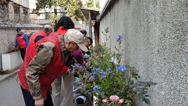 先賢街墻角花卉。 通訊員供圖