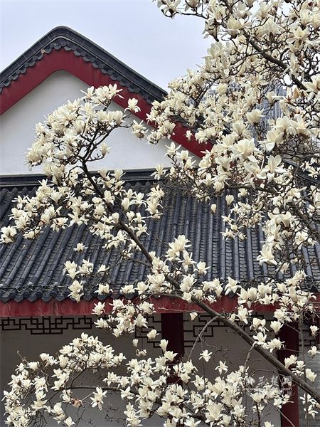 不與繁花爭(zhēng)艷,只在古檐下靜靜綻放,潔白如玉,溫潤(rùn)如詩(shī)。一樹芳華,半盞禪心,于喧囂塵世中守一份清雅。駐足凝望,花影綽約,光影流轉(zhuǎn),仿佛時(shí)光都慢了下來(lái)。這一抹素白,是春日最溫柔的詩(shī)意,也是古觀里最動(dòng)人的清歡。
