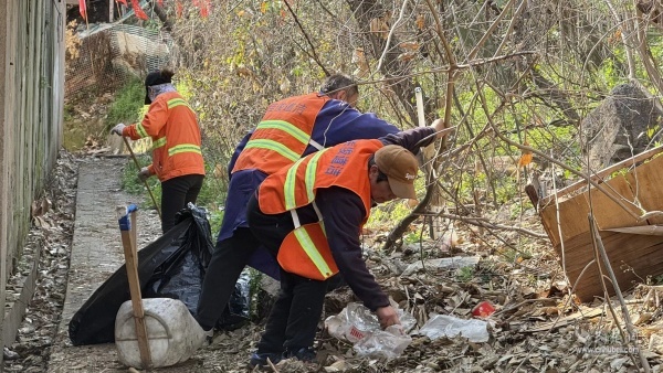 工作人員與志愿者穿梭于陡坡之上、溝壑之間,手持夾鉗、垃圾袋,逐點(diǎn)摸排、逐處清理,不放過任何一個(gè)隱蔽角落。從坡頂?shù)狡碌?,從石縫到樹叢,枯枝落葉、白色垃圾、廢棄雜物被一一清理出來,讓坡地逐漸顯露出原本的清爽模樣。對(duì)于清理出的各類垃圾,現(xiàn)場實(shí)行分類收集、閉環(huán)清運(yùn),確保整治見底見效,堅(jiān)決杜絕二次污染。