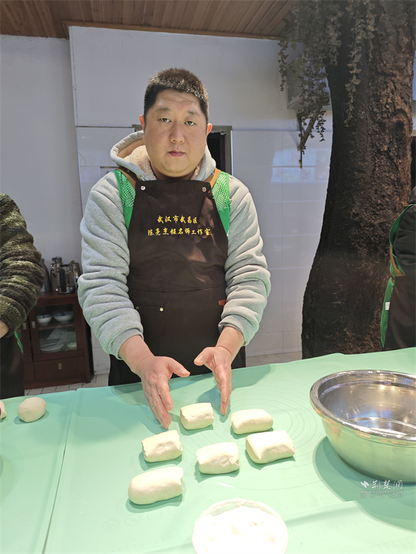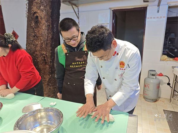 面點老師手把手指導(dǎo)演示揉面細(xì)節(jié)。 通訊員供圖