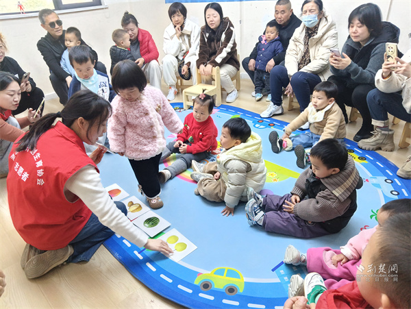 荊楚網(wǎng)(湖北日報網(wǎng))訊(通訊員 付玲)3月18日上午,武昌區(qū)紫陽街道歌笛湖社區(qū)聯(lián)合曼迪哆來咪兒童成長中心正式啟動2026年度親子早教系列課程。首場“語言&認識——有趣的水果”主題活動,吸引12組0—3歲嬰幼兒家庭參與,家長與孩子在游戲中親密互動,共同學(xué)習(xí)感官啟蒙與語言引導(dǎo)方法。