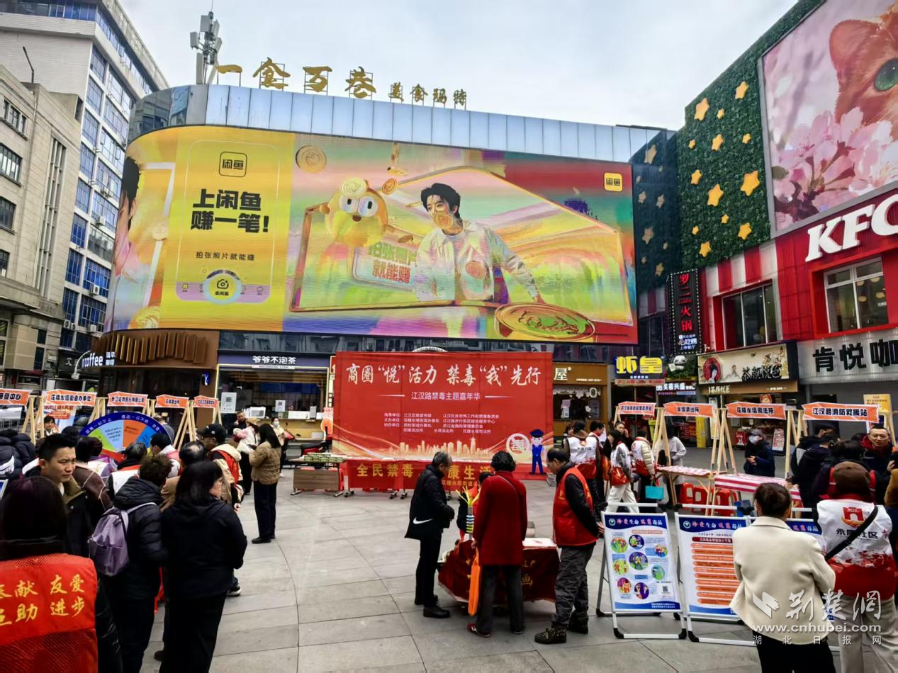 當(dāng)天上午,江漢路步行街中心廣場人流如織,一場以“商圈‘悅’活力 禁毒‘我’先行”為主題的禁毒嘉年華活動(dòng)熱鬧開啟。活動(dòng)以互動(dòng)體驗(yàn)為核心,創(chuàng)新推出“5大現(xiàn)場互動(dòng)板塊”和“1個(gè)流動(dòng)宣傳矩陣”,將禁毒知識巧妙融入游戲、非遺文化和民生服務(wù)中,吸引大量市民游客參與。