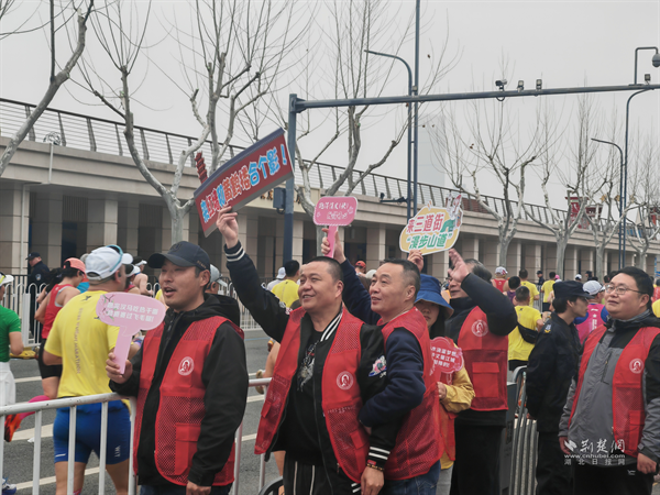 清晨六時,天剛微亮,全體志愿者已身著統(tǒng)一志愿馬甲到崗到位,迅速投入賽前準備工作。賽事開跑后,各服務點位的志愿者們分工協(xié)作、忙而有序:一句句“調(diào)整呼吸,保持節(jié)奏”“加油,你是最棒的”的暖心叮囑,讓跑者在奮力奔跑中倍感溫情;賽道兩側(cè),志愿者們結(jié)合街道特色,手持“漢味美食第一巷”“來三道街漫步山道”等定制手舉牌,與彩旗交相輝映,大家齊聲高喊加油口號,激昂的歡呼聲此起彼伏,成為激勵跑者奮勇前行的暖心力量,用最熱烈的方式為每一位跑者鼓勁喝彩。