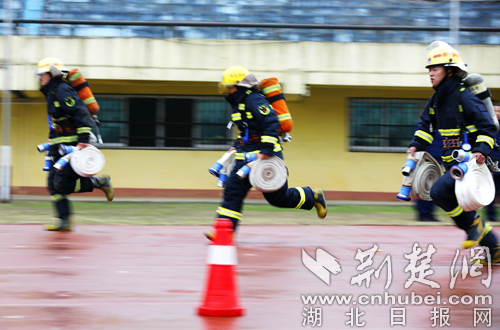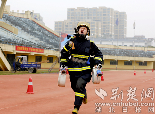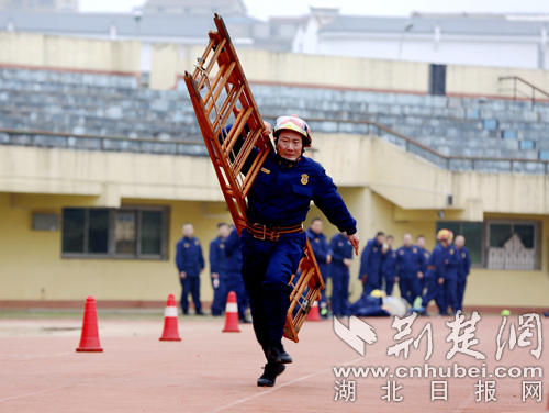 圖為開(kāi)展60米肩梯跑科目現(xiàn)場(chǎng)。 通訊員 朱燕林?jǐn)z