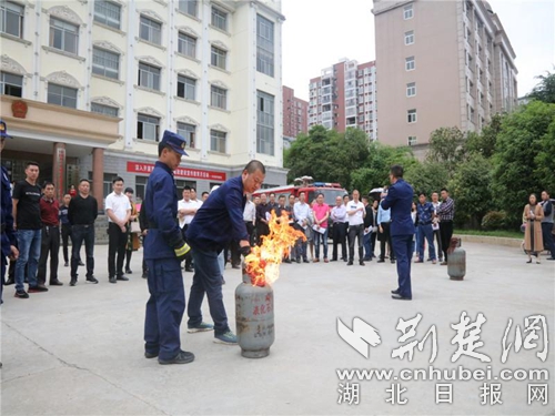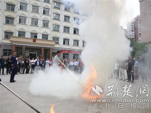 圖為消防宣傳員現(xiàn)場傳授滅火知識。 程遠攝