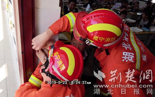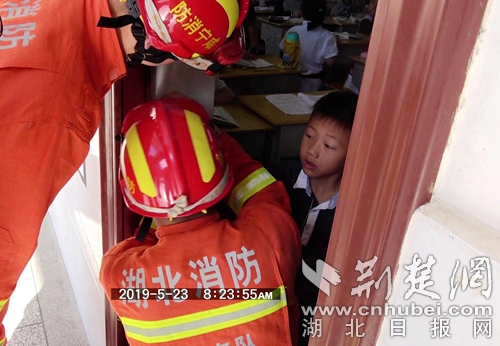 荊楚網(wǎng)客戶端-荊楚網(wǎng)消息(通訊員 朱燕林)5月23日,咸寧市泉塘小學(xué)有學(xué)生手卡門栓,接警后,溫泉消防大隊三號橋執(zhí)勤站迅速出動1輛消防車、6名消防員趕赴現(xiàn)場處置。