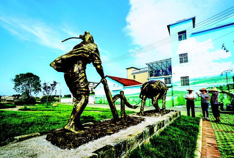 咸安區(qū)向陽湖鎮(zhèn)寶塔村郭家灣文化廣場(chǎng)。寶塔村近年來投入300余萬元進(jìn)行美麗村灣建設(shè)。目前已進(jìn)行景觀路、村灣墻面藝術(shù)墻繪、立體觀光農(nóng)業(yè)大棚、4000平方米綠化帶等項(xiàng)目建設(shè),栽種景觀樹1000余棵。(湖北日?qǐng)?bào)全媒記者 陳勇 通訊員 李星 吳濤 攝)