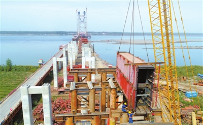 據(jù)介紹,赤壁長江公路大橋南岸灘橋、引橋、左湖大橋、清江寨大橋墩身及蓋梁進(jìn)展順利,即將完工。