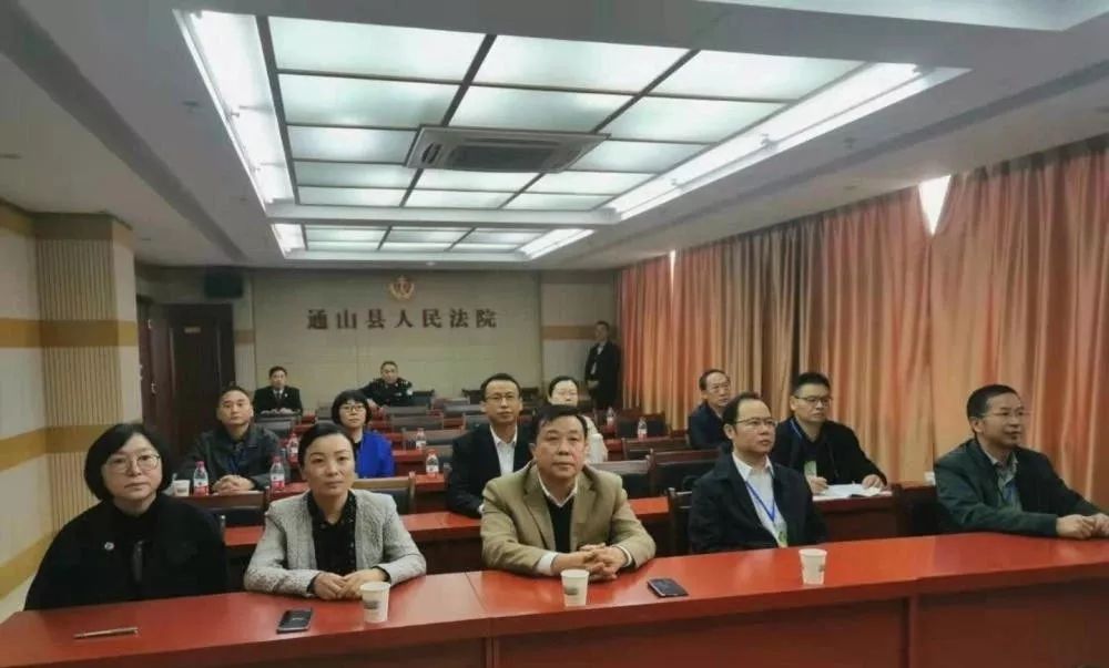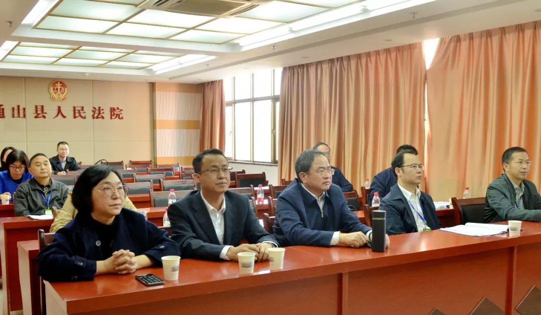 省市縣相關(guān)領(lǐng)導(dǎo)在通山縣人民法院安保指揮中心觀摩庭審直播