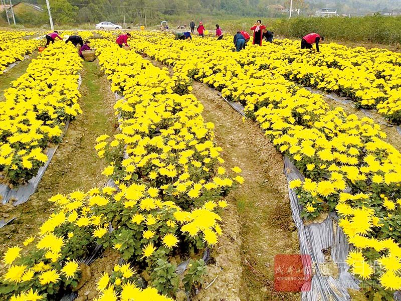 為了發(fā)展村級(jí)集體經(jīng)濟(jì)和帶動(dòng)貧困戶就業(yè),咸安區(qū)桂花鎮(zhèn)黨委政府轉(zhuǎn)變思路,在萬(wàn)壽橋村十一、十二組及時(shí)調(diào)整種植模式,試種40畝菊花。目前,正值菊花盛開(kāi)的時(shí)節(jié),村民們正在忙著采摘菊花。