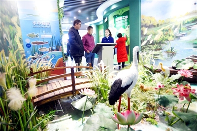 12月3日,咸安區(qū)向陽湖國家濕地公園科普宣教展館,游客跟隨講解員參觀湖地生態(tài)動植物微景觀。該館是青少年自然教育拓展基地,投資300多萬元,融入4D元素,于11月中旬建成開館,以立體化、沉浸式體驗(yàn)提高科普的教育性、生動性和觀賞性。