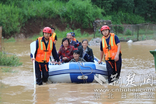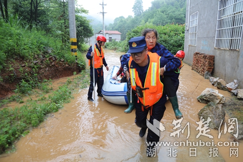 15時20分,消防救援人員趕到現(xiàn)場時發(fā)現(xiàn),泥湖村由于地勢低洼,通村道路被淹沒,水深的地方有1米左右,部分房屋浸泡在洪水中。消防救援人員了解到,被困人員多數(shù)是年事已高的老人,為了盡快營救被困群眾,消防救援人員通過電話聯(lián)系被困群眾和詢問當?shù)卮迕?,確定人員被困的位置。消防大隊指揮員立即下達作戰(zhàn)命令,利用橡皮艇分批次將被困人員轉(zhuǎn)移到安全區(qū)域,其中有1名中風老人無法自主行動,消防救援人員立即將其背運至安全區(qū)域。隨后,消防救援人員挨家挨戶再次對該村進行搜索,直至確認村民全部安全為止。