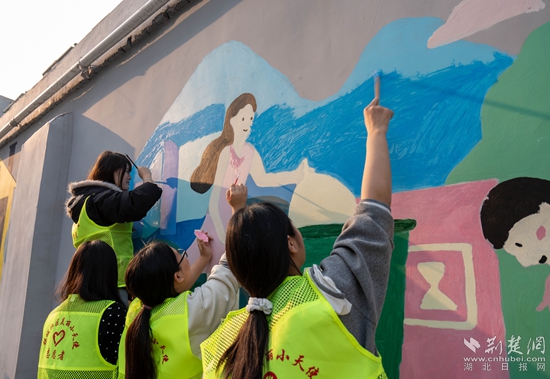 美術(shù)班變志愿隊(duì),社區(qū)環(huán)境大不同。熊駿 攝