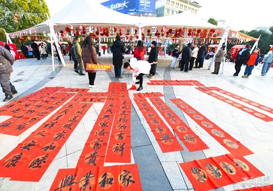 通山縣石瑛廣場(chǎng)墨香送福,剪紙窗花貼滿展架;文體中心山歌繚繞,老藝人陳如銀一曲山歌贏得滿堂彩。