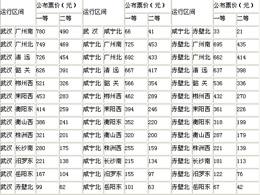 荊楚網(wǎng)消息 (楚天都市報) (記者董鳳龍 通訊員劉強(qiáng) 李慶)昨日,武廣鐵路客運(yùn)專線有限責(zé)任公司公布武廣客專沿線各車站試行運(yùn)價。
