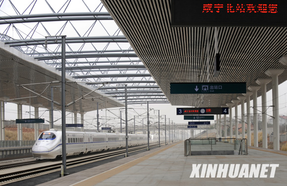12月26日9時(shí)16分,從武漢始發(fā)的首列動(dòng)車組列車快速通過(guò)湖北咸寧北站。 當(dāng)日,武廣高鐵正式通車運(yùn)營(yíng),標(biāo)志著我國(guó)步入高速鐵路新時(shí)代。 新華社記者 皮曙初 攝