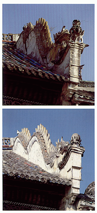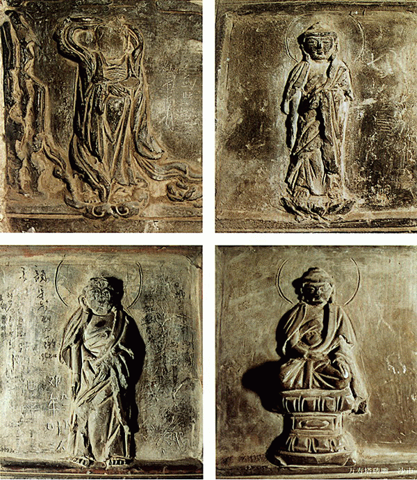 磚 雕 萬壽塔座落在荊州市荊江大堤內側古觀音磯上,是16世紀中葉,明藩第七代遼王朱憲節(jié)遵嫡母毛太妃之命為嘉靖帝祈壽而建。塔身內外除玉雕佛龕坐佛外,還有兩千多塊磚雕。藝人以浮雕和線刻手法塑造了神態(tài)各異的佛像、動物、花鳥圖案。磚雕兩側,還以漢、滿、蒙、藏、回五種文字刻有捐資者姓名、捐資數目。